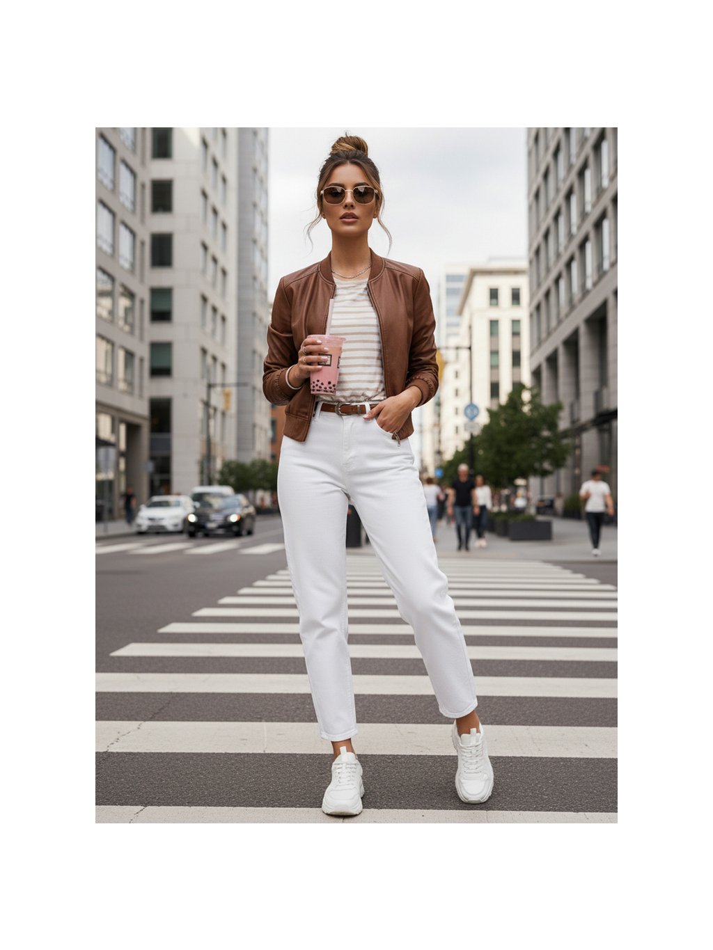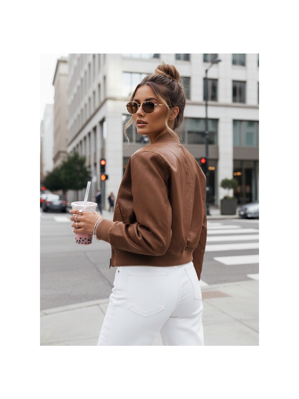 Dámská kožená bomber bunda SANTOL je dokonalým spojením městského stylu a pohodlí. Kratší střih krásně zvýrazní siluetu a dodá outfitu moderní, lehce sportovní charakter. Díky elastickým manžetám a zapínání na zip je bunda nejen stylová, ale také praktická pro každodenní nošení.