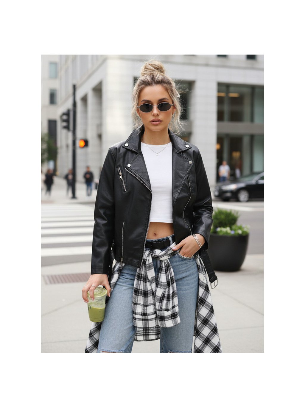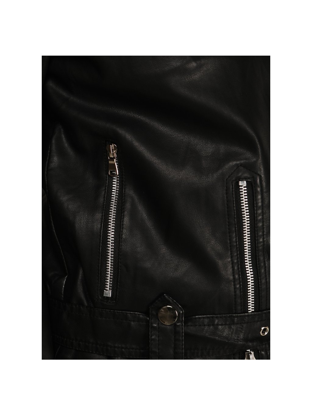Bunda je vyrobena z kvalitní ekologické kůže, která působí elegantně a zároveň se snadno udržuje. Černá barva z ní dělá univerzální kousek pro každodenní outfit i večerní styling.