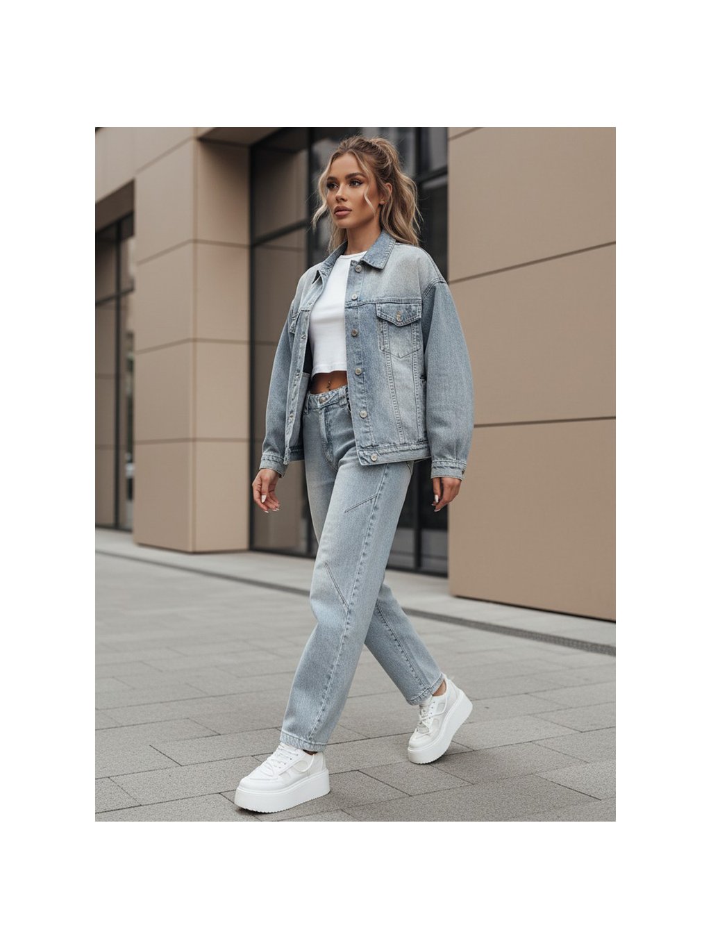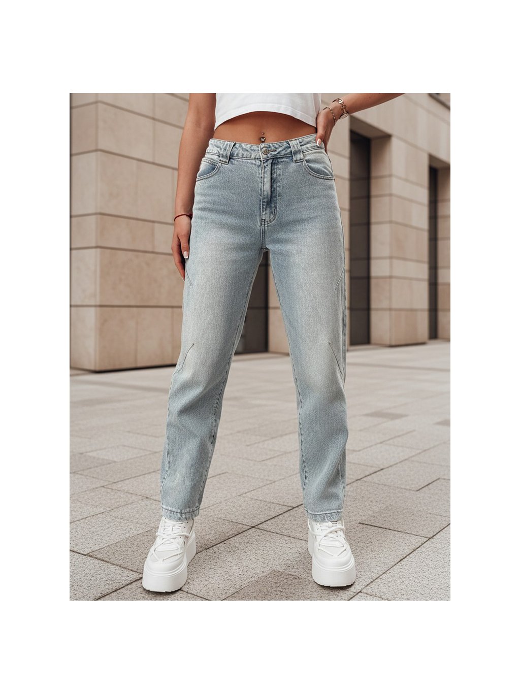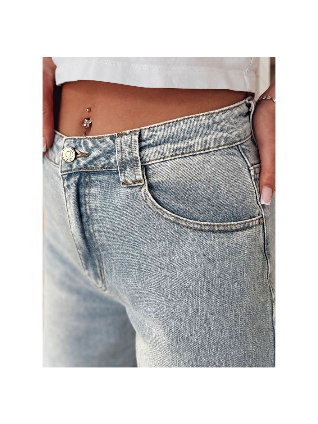 Klasické zapínání na zip a knoflík, pět kapes a jemné prošívání dodávají džínům nadčasový vzhled. Díky příměsi elastanu se materiál lépe přizpůsobí postavě a pohodlně se nosí po celý den. Skvěle se kombinují s crop topy, košilemi i kratšími bundami.