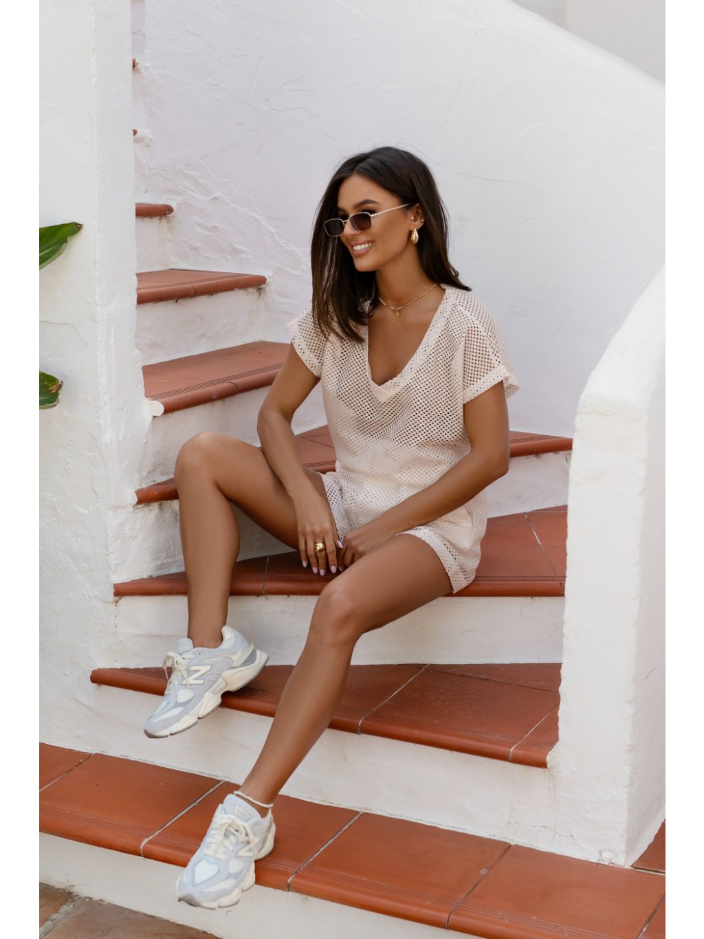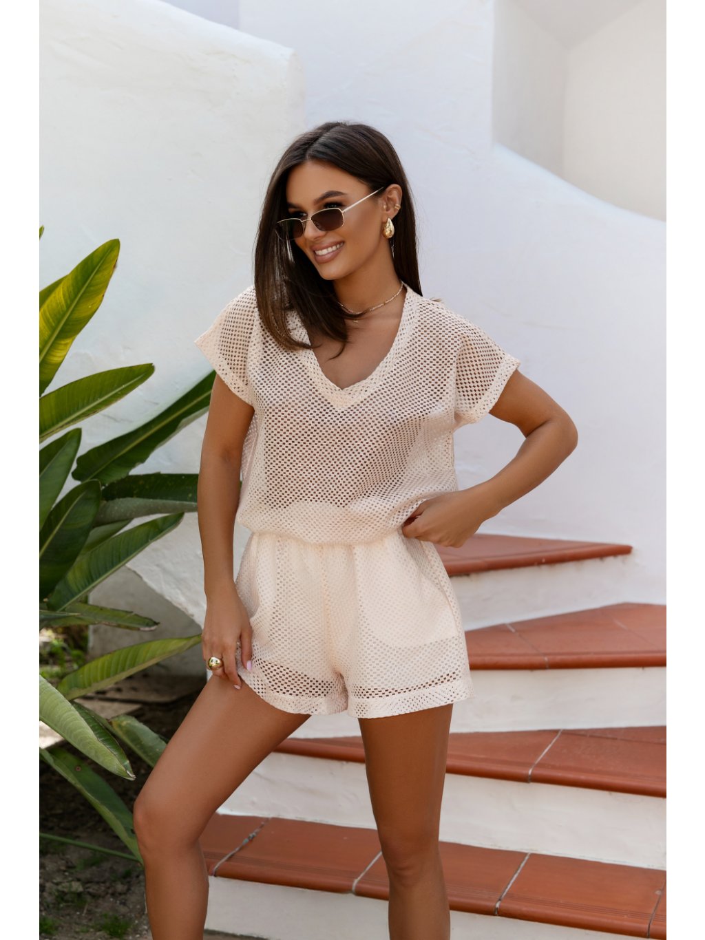 Stylová dvoudílná souprava se skládá z moderních šortek a oversize sítovaného trička. Krátké kalhoty jsou vyrobeny ze vzdušné síťoviny a jsou podšity látkou stejné barvy, což zajišťuje nejen pohodlí, ale i skvělý vzhled.