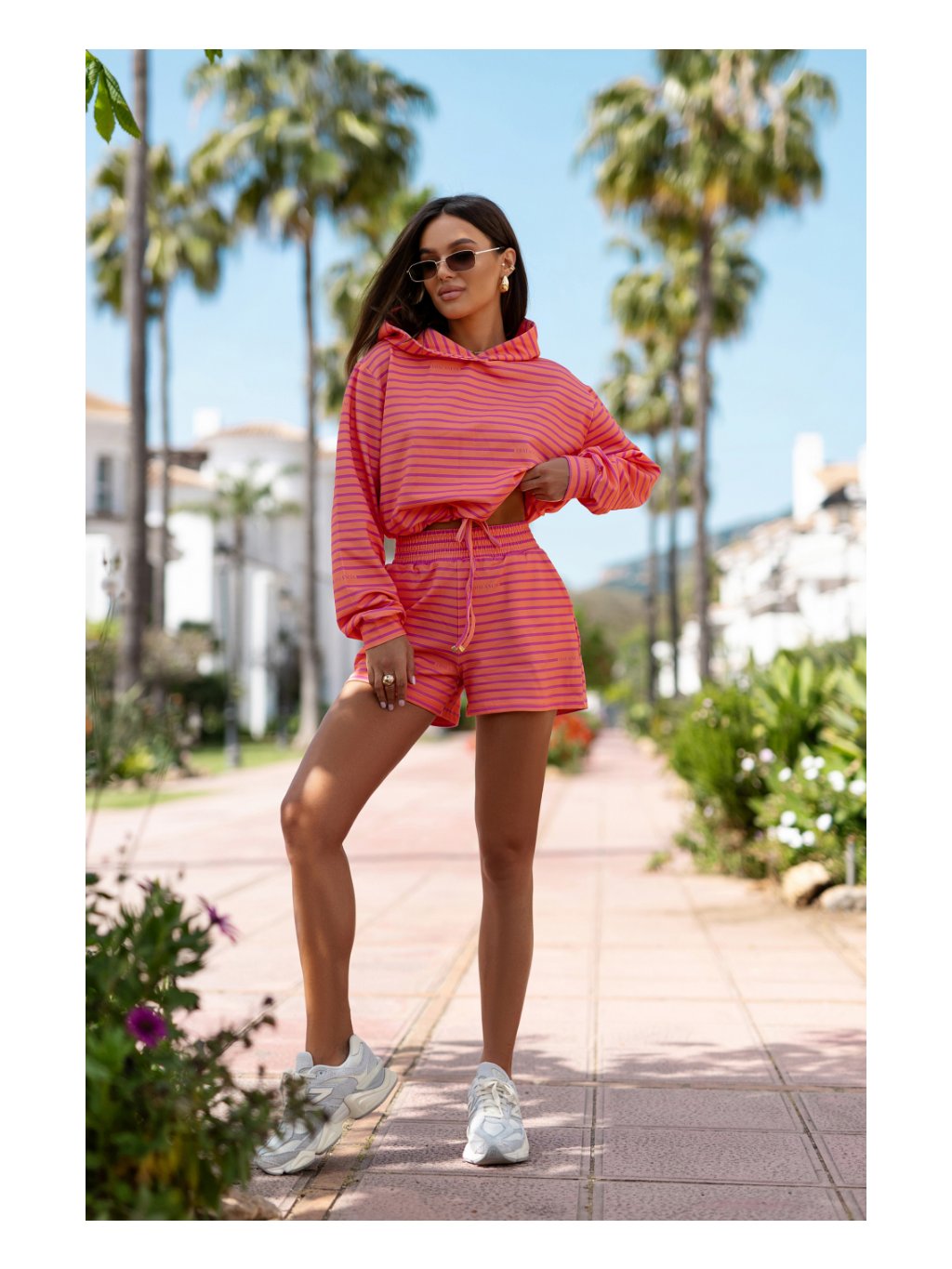 Dokolaný dvoudílný set, který se skládá z krásně padnoucích šortek a stylové mikiny. Tento atraktivní set vám nejenže zajistí maximální pohodlí, ale také vám dodá šmrnc.